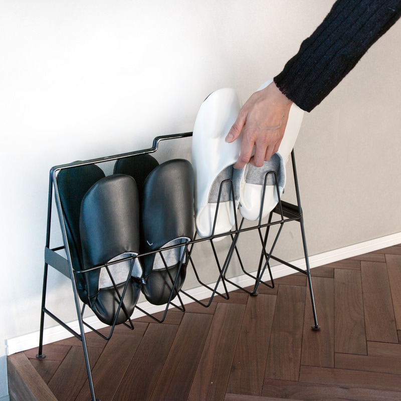 無駄が一切無いシンプルでスタイリッシュなスリッパラック。